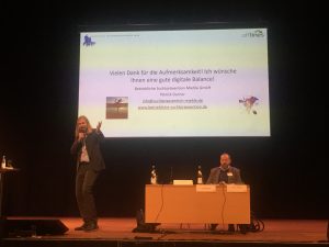 Die Deutsche Hauptstelle für Suchtfragen als renommierteste Institution zum Thema Sucht in Deutschland veranstaltete 2019 ihre Fachkonferenz Sucht in Augsburg. Heimspiel also für Geschäftsführer Patrick Durner, der ein Forum als Referent mitgestalten durfte. Unterstützung bekam er dabei vom sehr geschätzten Kooperationspartner Dominik Hammer von cogitabo GbR. Einige Monate zuvor durfte Patrick Durner auf eben dieser Bühne den hoch verehrten Josef Hader in Aktion erleben. Die Ehre, auf der gleichen Bühne agieren zu dürfen bleibt ewig unvergessen.